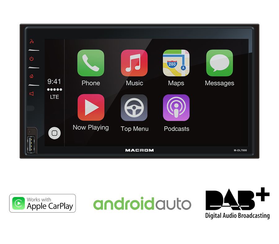 M-DL7000D25 är en 2-DIN bilstereo med 6.8" kapacitiv pekskärm, stöd för Apple CarPlay och Android Auto samt integrerad GPS för online-navigering. Med modern anslutning, intuitiva kontroller och inbyggd DAB+ levererar den en komplett infotainmentlösning med fokus på säkerhet, användarvänlighet och ljudkvalitet.- 6.8" kapacitiv pekskärm