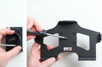 1. Lossa på skruven mitt i hållaren så att du kan ta bort monteringsplattan på baksidan.