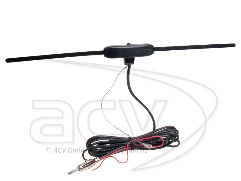 Aktiv 12v fönster antenn för FM/AM och TMC. Med ISO kontakt som passar alla bilstereo. Kabel längd 240cm. 30cm bred med antennspröten.