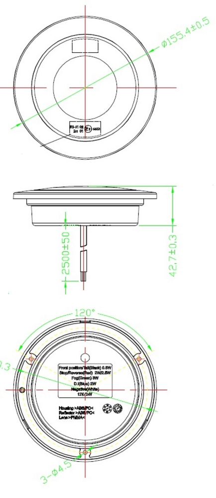 En modern rund LED baklampa med tre funktioner, bakljus, bromsljus och blinkers. Försänkt montering med kromring som täcker monteringsskruvarna. Levereras med 2,5m kabel.Produktblad