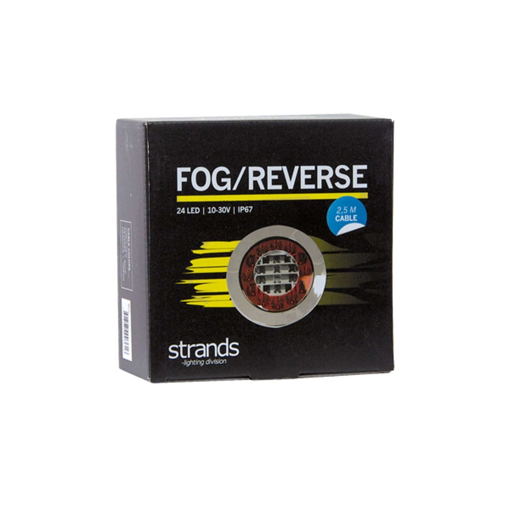En modern rund LED baklampa med två funktioner, dimljus och backljus. Försänkt montering med kromring som täcker monteringsskruvarna. Levereras med 2,5m kabel.