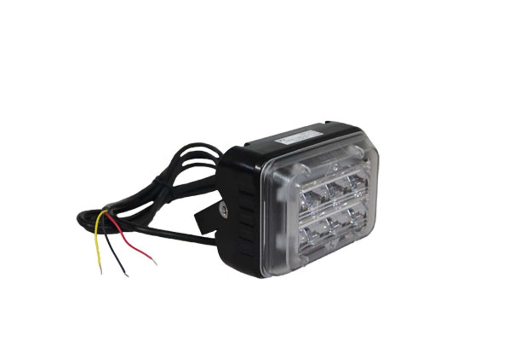 Robust blixtljus med klart glas och sex dioder. Kommer med ett blixtmönster på 120blixt/min och monteras med hjälp tillkommande fäste. Levereras med 1,9m kabel.Produktblad