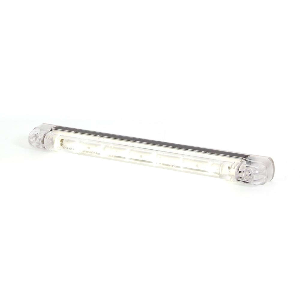 Avlångt, slimmat DRL/positionsljus med klart glas och LED teknik. Rundade kanter, tunn design och färdiga skruvhål gör denna lampa mycket användarvänlig.Produktblad