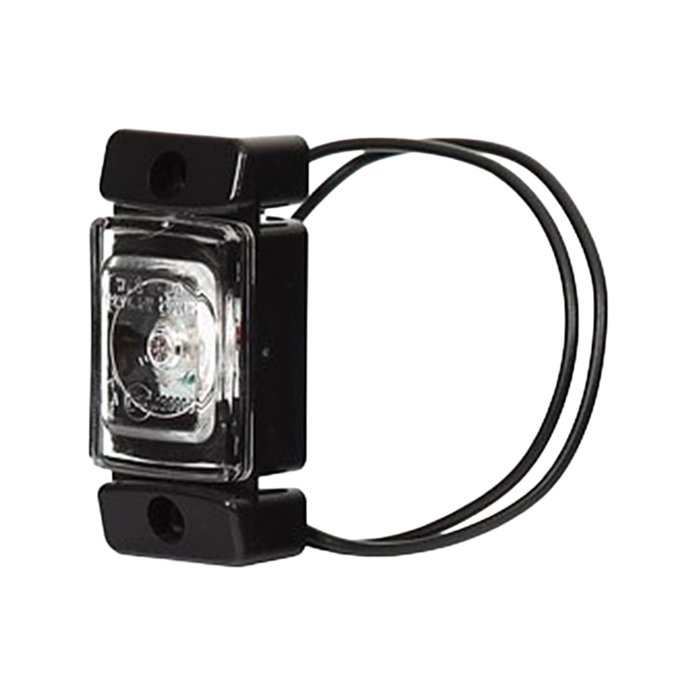 Ett simpelt och okonstlat positionsljus i vitt med svart ram som gör lampan mycket lätt monterad.Produktblad