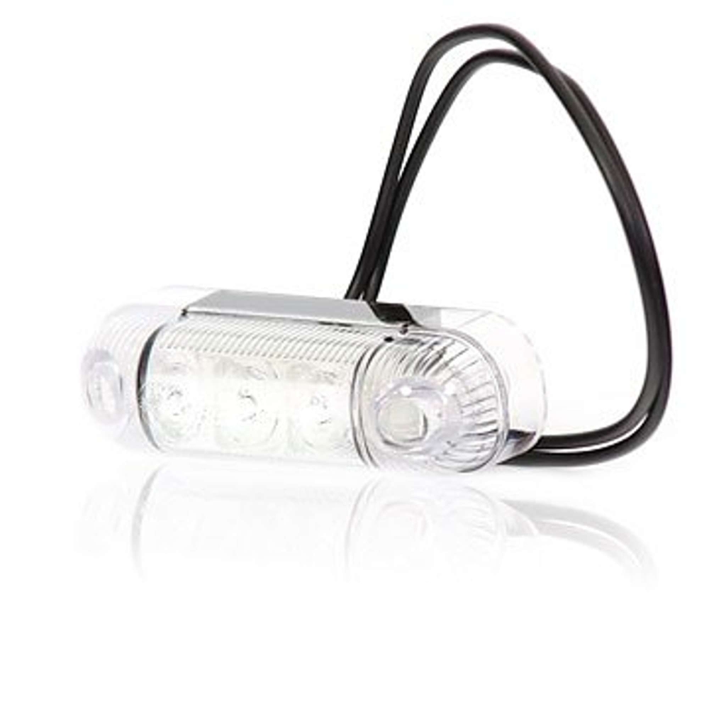 Vitt LED positionsljus med klart glas, 3 dioder och två skruvhål för enkel montering.