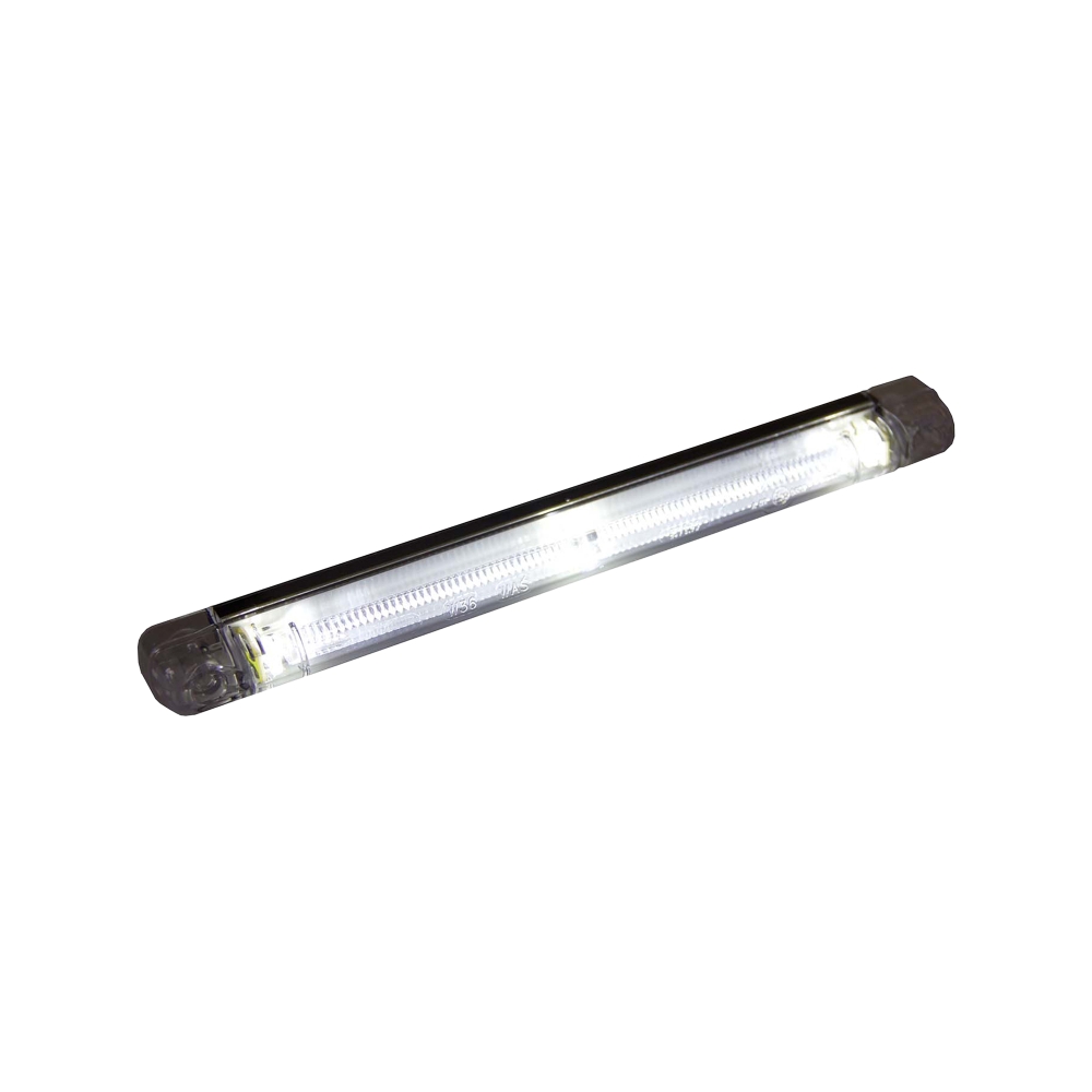 Avlångt vitt LED positionsljus med nio dioder och klart glas. Robust design som andas kvalité och hållbarhet.Produktblad