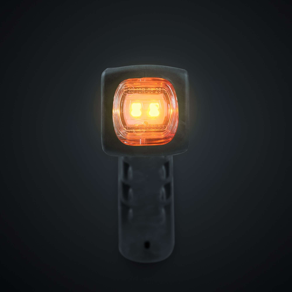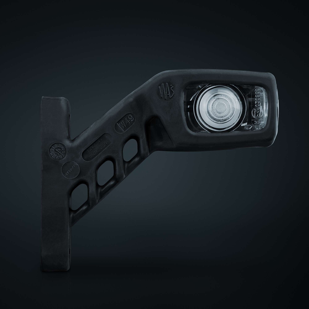 Kort gummiarm (höger) med positionsljus och sidomarkering. Armen är lätt att montera och har klart glas som ger en snygg finish. Ett ”allt i ett alternativ” som för med sig kvalité och enkelhet.Produktblad