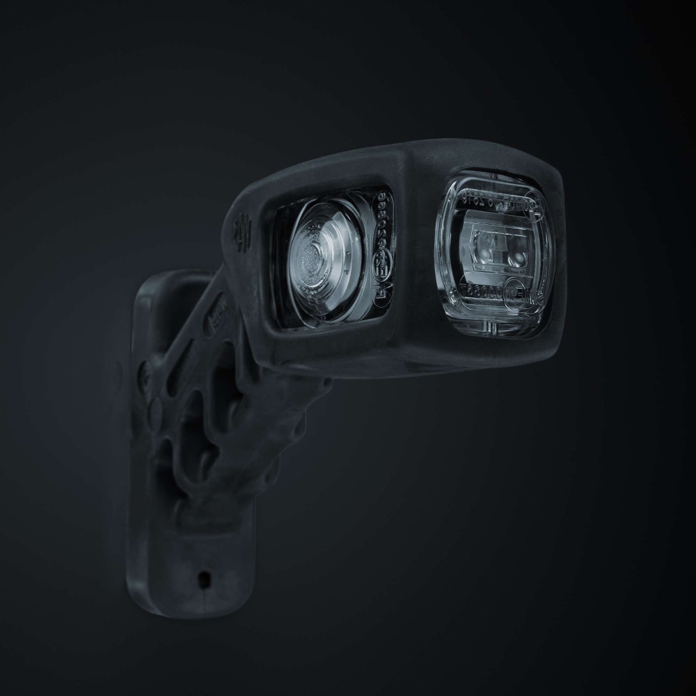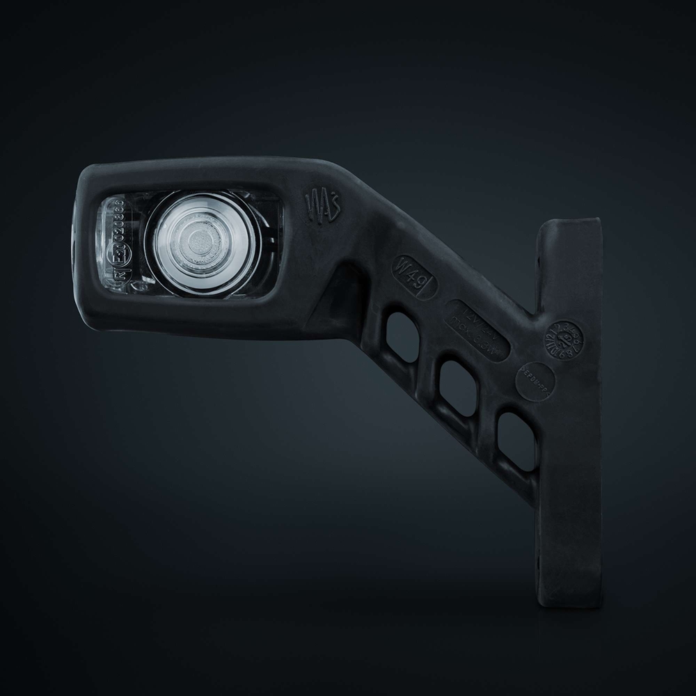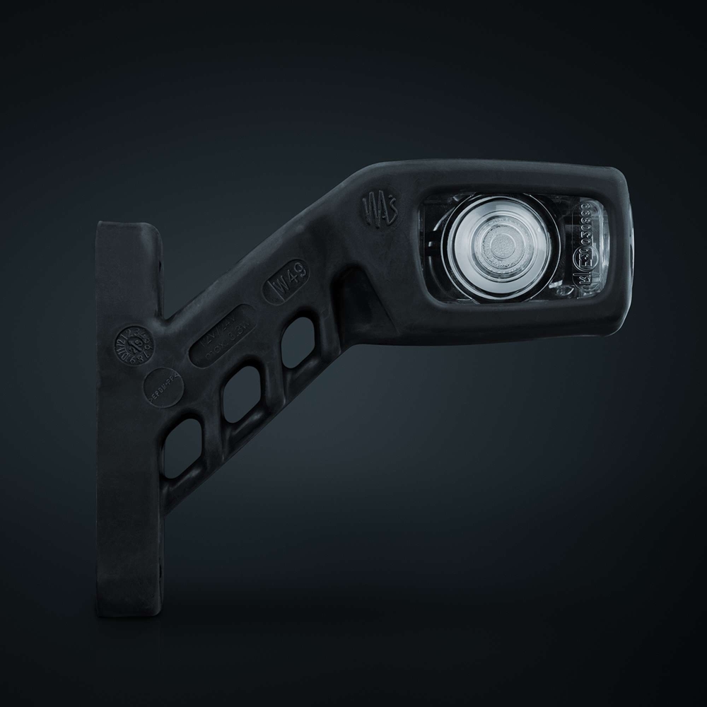 Kort gummiarm (vänster) med positionsljus och sidomarkering. Armen är lätt att montera och har klart glas som ger en snygg finish. Ett ”allt i ett alternativ” som för med sig kvalité och enkelhet.Produktblad