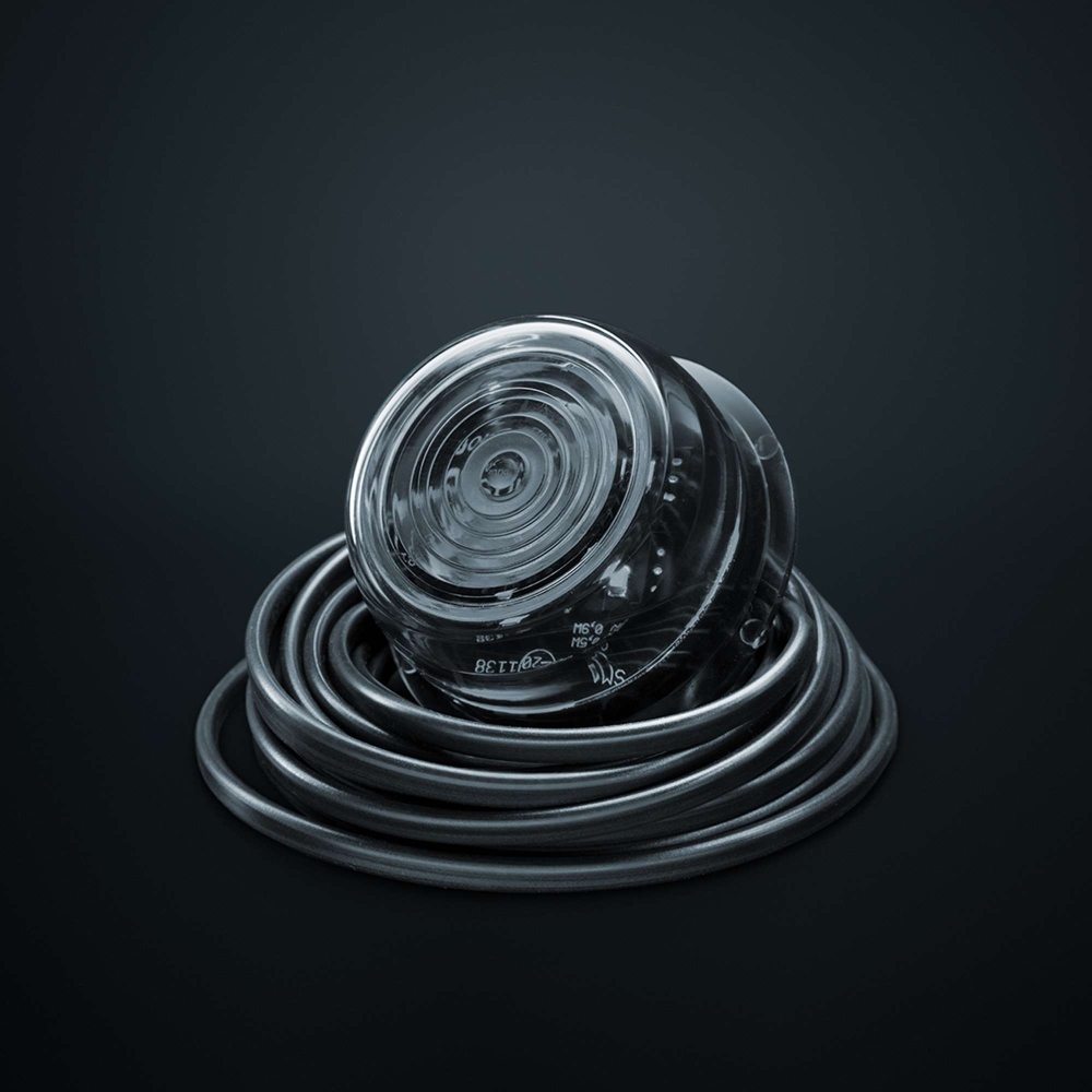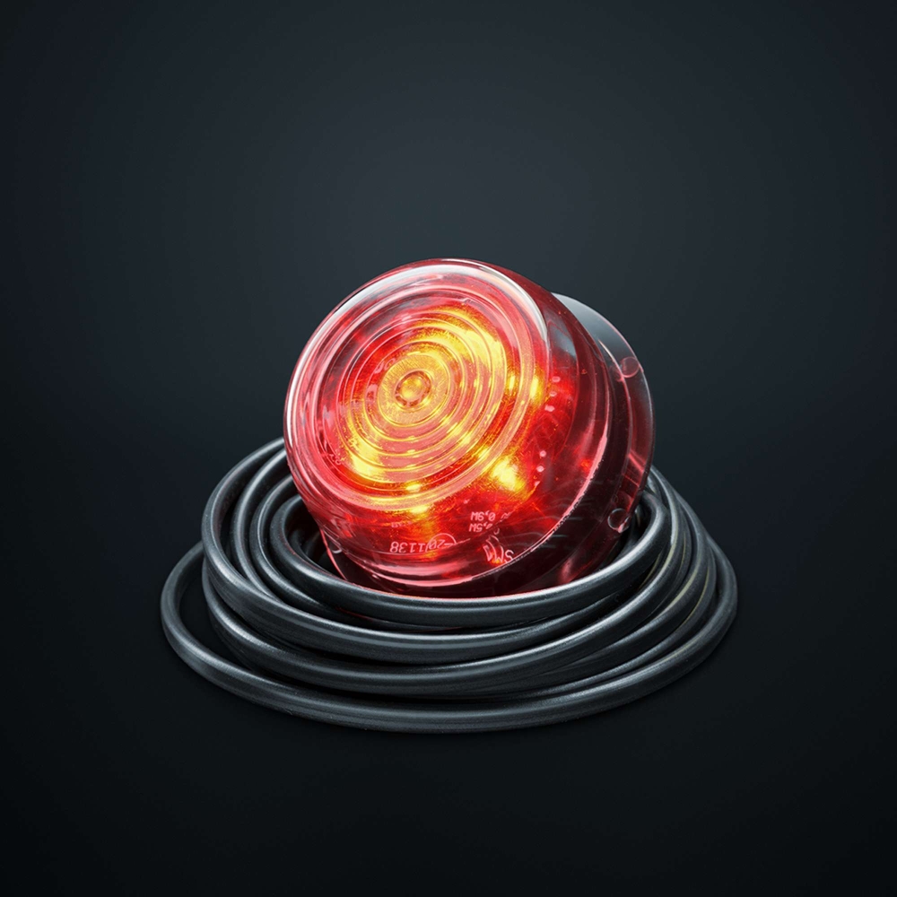 Viking 6 LED röd med klart glas är en E-godkänd sidomarkering i hög kvalitet, tillverkad i Europa, med 5 m kabel och kompatibel med 60 mm arm.