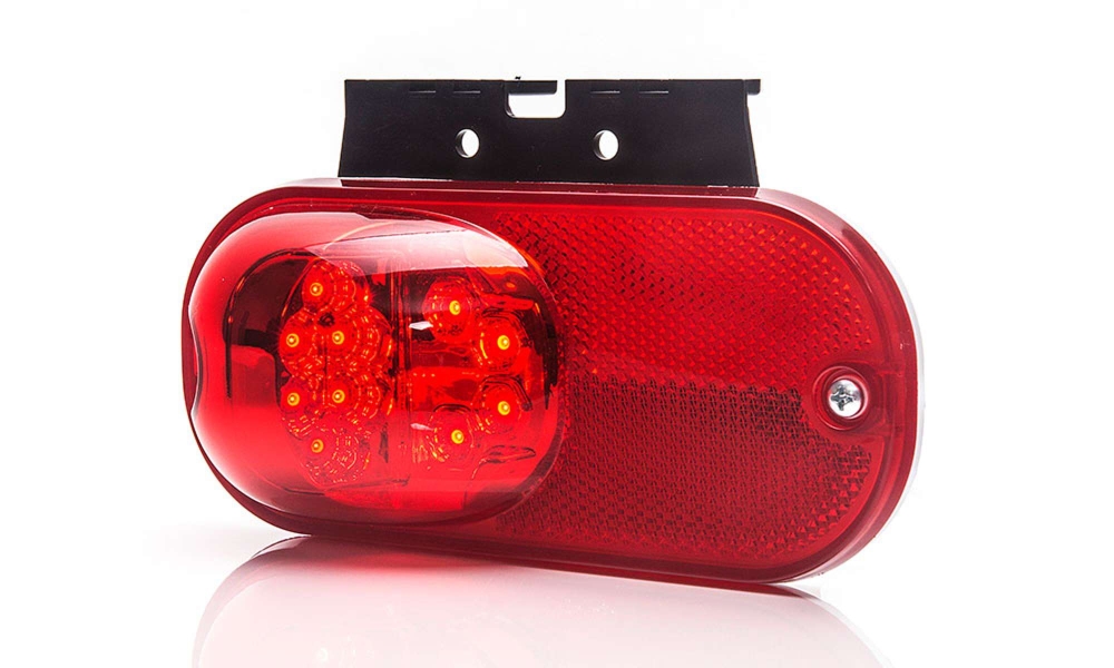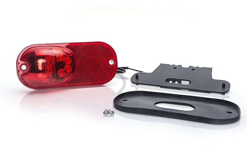 Rødt posisjonslys med refleks og LED-teknologi for synlighet og sikkerhet.
