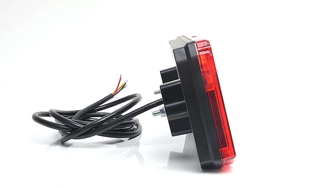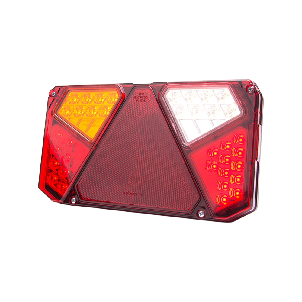 Rektangulär LED baklampa (vänster) med fem funktioner, bakljus, bromsljus, blinkers, dimljus och backljus.Produktblad