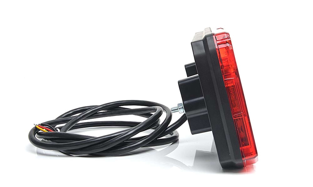 Rektangulär LED baklampa (höger) med fem funktioner, bakljus, bromsljus, blinkers, dimljus och backljus.Produktblad