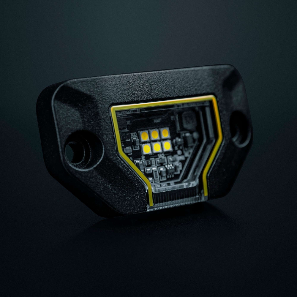 Uttryck din personlighet och få den perfekta stilen på ditt fordon. Unity rock light kommer i fyra utföranden: vitt, orange, rött eller gult ljus. Ljusstyrkan når upp till 780 faktiska lumen och 17 meter räckvidd (för vitt ljus) så att du kan få perfekt synlighet i varje situation. Den låga strömförbrukningen och användning med 10-32 V gör att Unity rock light passar många olika fordon.