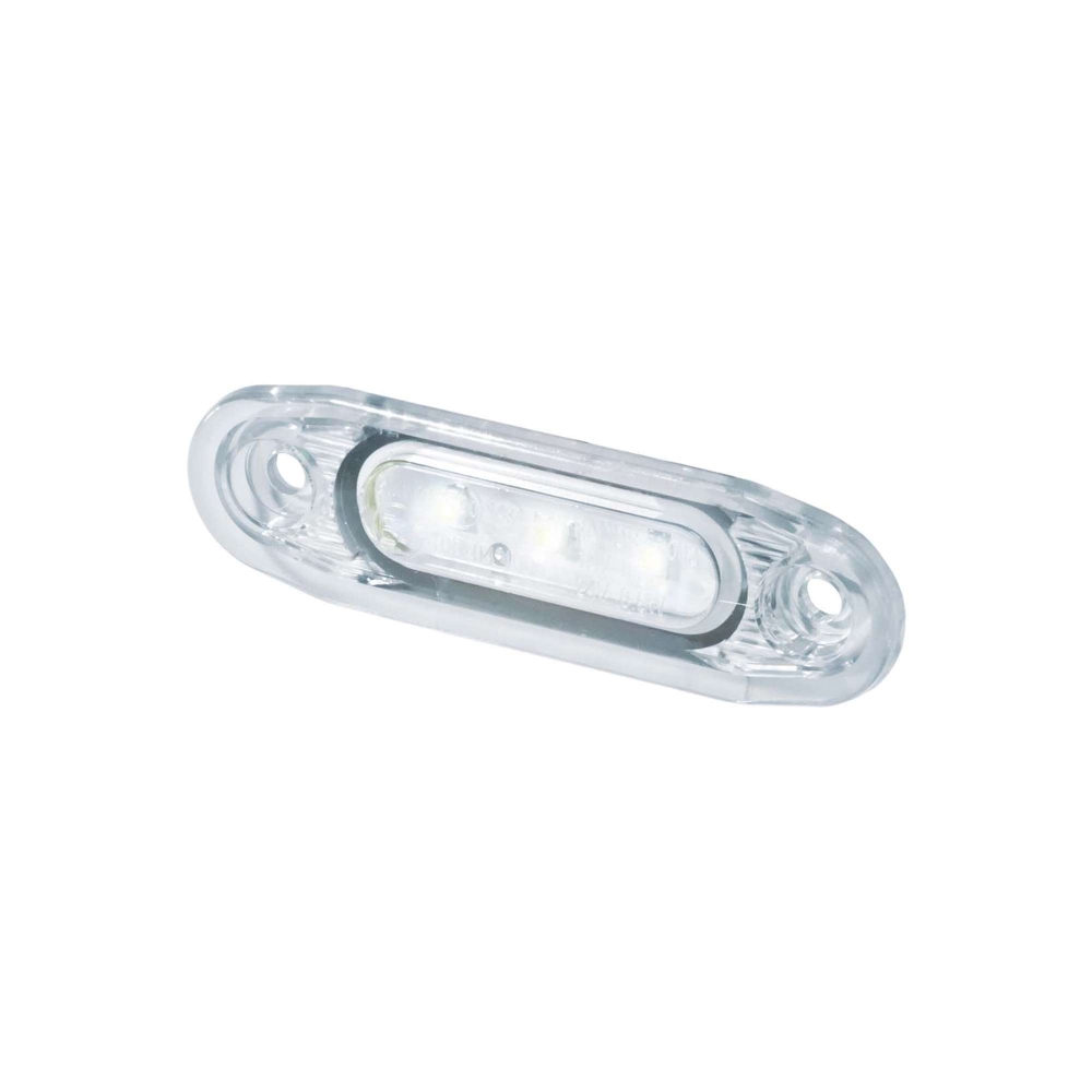 Vitt positionsljus med rundade kanter, enkel att montera, levereras med 5 m kabel och tre års garanti. Följer med gummipackningar.