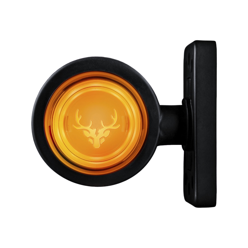 Den här orange sidomarkeringen har en mörk lins och en hög nivå av ljusintensitet. Allt för högsta möjliga säkerhet och synlighet. Det starka ljuset drar dessutom uppmärksamheten till ditt företags logga när ljuset tänds, eller välj den klassiska Viking-logotypen med en hjort. Det är även E-godkänt enligt R148.