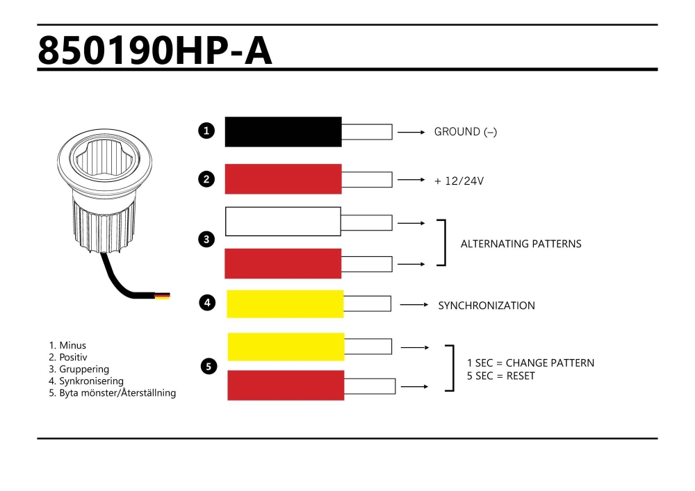 Ett godkänt (ECE R65) slimmat blixtljus som kan fällas in eller monteras med fäste (art. nr 850191). Blixtljuset bygger endast 3mm utåt vid infällning och det går att synkronisera hela 8 blixtljus utav denna modell.