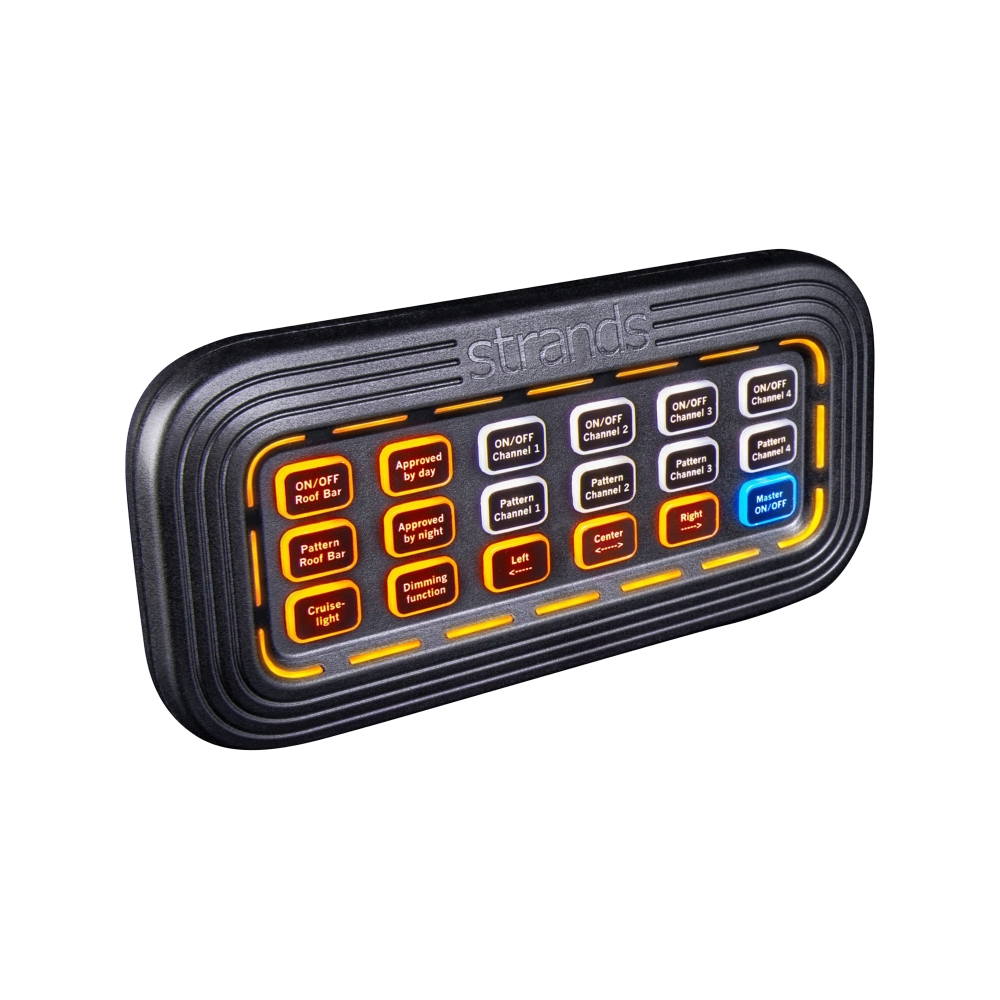 Kontrollboxen är färgkoordinerad. Nio knappar är orangea, åtta är vita och en är blå. De orangea knapparna är dedikerade till Cruise Light blixtljusramper och kan till exempel byta varningsljusmönster. För de flesta funktioner är knapparna highlightade när de används och varningsljusmönstret visas i lysdioderna runt kontrollboxen. Du får också knappar för godkännande av dagsläge, nattläge och Cruise Light-läge.