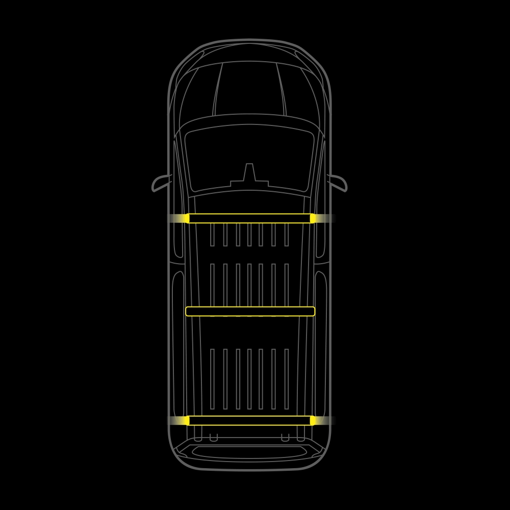 Detta är inte bara ett lasträcke – det är ett högfunktionella och modellanpassat system som smart kombinerar maximal lastkapacitet med integrerad varningsbelysning av högsta synlighet. Konstruktionen är speciellt utformad för att utnyttja din Mercedes Vito's befintliga monteringspunkter, vilket eliminerar behovet av borrning eller modifieringar.
