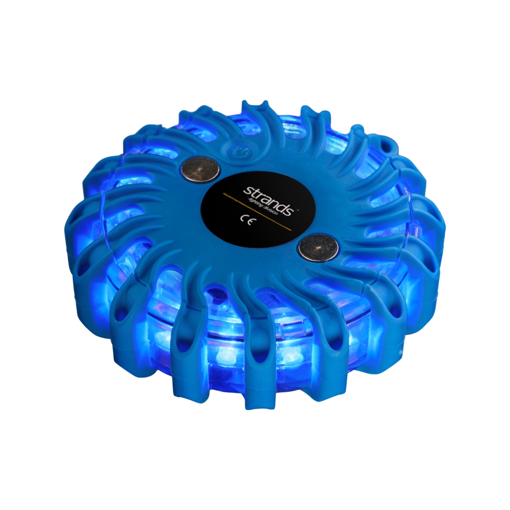 Strands Lighting Division blåa varningsljuspuck med CR123A batteri gör dig synlig på långa avstånd. Den ringa storleken gör produkten enkel att förvara i fordon. Vattentät och flytbar med 16 långlivade LEDs. Stark magnetisk bas för montering. Perfekt för användning inom trafiken för att varna andra trafikanter. Kan uppmärksamma både maskineri och faror vilket gör detta till ett mycket flexibelt verktygProduktblad