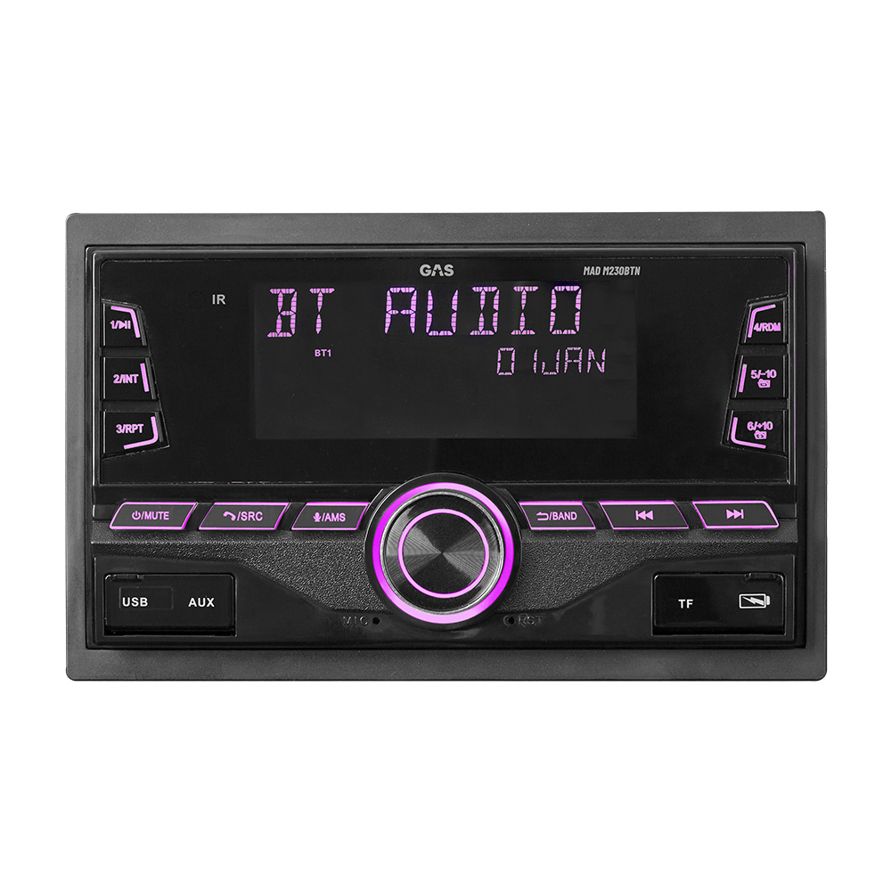 MAD M230-BTN är sprängfylld med smarta finesser! Bluetooth 5.3 säkerställer en stabil anslutning för musikstreaming och handsfree-samtal, medan den löstagbara frontpanelen ger extra säkerhet – perfekt om du vill minska stöldrisken när bilen står parkerad. Med sju valbara färger för display- och knappbelysning kan du enkelt matcha stereon med bilens interiör. Den medföljande fjärrkontrollen gör det smidigt att styra bilstereon från passagerarsätet eller om du står utanför bilen och ska demonstrera ditt grymma ljudbygge!