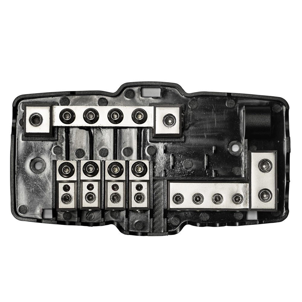 Säkringshållare & jordblock för fyra AFS-säkringar och en smidig funktion för jorddistribution.